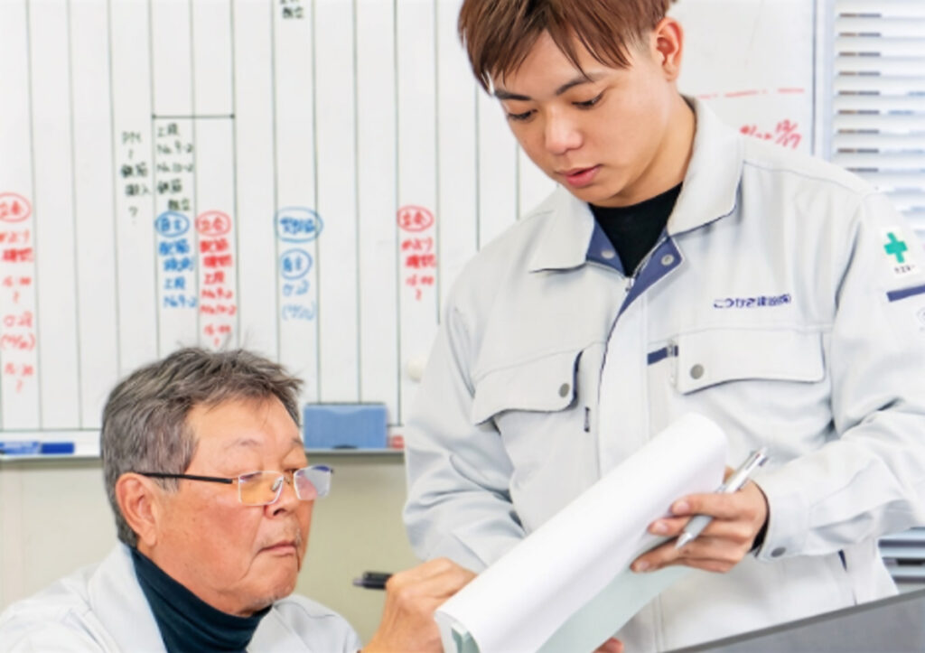 専門分野出身者が活躍しているイメージが強い業界ですが、土木科や建築科を卒業した社員はもちろんのこと、文系出身も活躍中の当社。現場では誰もがゼロからのスタートになるので、経験や知識、学部学科に関係なく成長できる職場環境づくりに努めています。先輩からの声