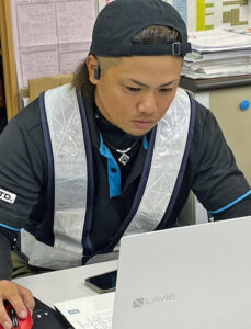 『形に残る街づくり』の話を聞いて興味を持ち、入社しました。分からないことも先輩から丁寧に教えてもらい、様々な技能にも積極的にチャレンジしながら、楽しく働いています!